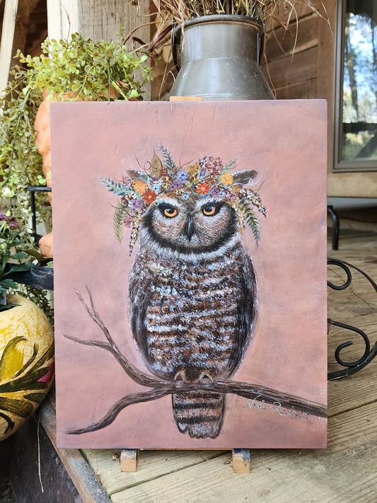 11"x14" Hand-Painted Gypsy Owl on Wood Panel - Original